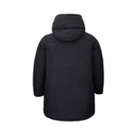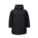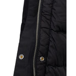 ADD Reversible Long Padded Jacket in black. Front zipper and covered button fastening, two side pockets closed with covered snap button, medium length, rounded at bottom. High collar with exposed buttons and hood. The garment is fully reversible, second part with visible padding. Item Sku: 6AW5108. Composition: 100% Polyamide-Sku inside:23OT106
