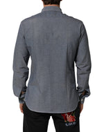 AGLINI Blue Denim Regular Fit Collared Long Sleeve Casual Shirt