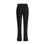 The black Wool Pleated Trousers by Alexander McQueen feature a slightly tapered straight leg, classic waist, and central crease. With straight side pockets and back pockets with flap and button, they combine contemporary elegance with refined tailoring details.