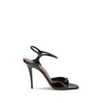 Amina Muaddi Black Calf Leather Bos Taurus Stiletto Heel Sandals