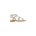 The ASH S25-PRECIOUS07 women’s sandals combine contemporary style with refined elegance. Crafted entirely from high-quality leather, these sandals feature multiple straps adorned with metallic studs, giving them a distinctive rock-chic vibe. The adjustable buckle closure at the ankle ensures a secure and personalized fit, while the flat sole offers all-day comfort. Perfect for complementing casual outfits or adding a bold touch to more sophisticated looks during the summer season.