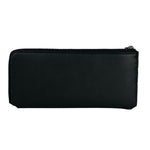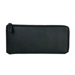 Baldinini black leather travel organiser, embossed logo on front, corner zipper opening, interior with several compartments for cards, coin purse and bills. Made in Italy