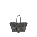 Balenciaga’s Bel Air medium Shoulder Bag is a spacious and functional accessory with a versatile pouch design. It features two handles for convenient carrying and the Balenciaga Paris logo embossed with silver lamination on the back, attesting to its authenticity. Enhanced with silver hardware and a removable key ring with double spiral loop, this bag is designed for organization: it includes snap buttons on the sides to modulate the shape, a swivel closure, and belts on the front with engraved logo. The interior features a large front pocket, an open main compartment, two interior zippered pockets and two interior flat pockets, offering practical solutions for every need.