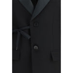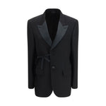 The wrap tailored Jacket by Balenciaga offers a refined reinterpretation of classic tailoring with a modern, sophisticated edge. Crafted from wool, it features a wrap construction with single-breasted front closure and a self-tie drawstring at the waist, subtly shaping the silhouette. The design is completed with classic lapels, a welt chest pocket and two front flap pockets. Long sleeves with buttoned cuffs, a central back vent and a cupro lining ensure comfort and ease of movement. Finished with a regular fit, this jacket embodies Balenciaga’s contemporary tailoring aesthetic.