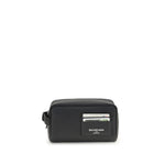 Balenciaga’s logoed Beauty Case combines functionality and style in a compact, detail-oriented design. Featuring a double top zipper, it offers a convenient, full opening, while the side panel pull makes it easy to carry. Two exterior card slots add versatility, complemented by the contrasting Balenciaga signature on the front for a distinctive, contemporary touch.