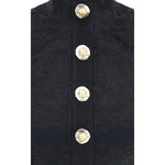 Balmain’s crop Top is a striking garment defined by an American neckline and a rich baroque pattern. Bare shoulders enhance the bust line, while decorative metal "Gold and Gold Coin" buttons on the front add an iconic touch. The back closure is completed with an exposed metal zipper with Balmain Paris engraved slider, a detail that reflects the Maison’s bold elegance.