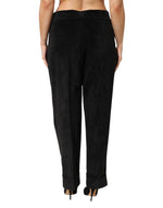 Crafted in luxurious black velvet, these classic tailored trousers feature a sophisticated cut with a straight-leg design, turned-up hem, and minimal detailing for timeless elegance. Perfect for both formal and evening wear.