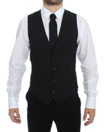 Dolce & Gabbana Black Striped Stretch Dress Vest Gilet