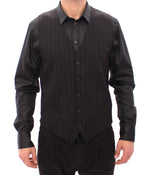 Dolce & Gabbana Black Striped Wool Logo Vest