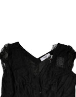 Blugirl Black Short Sleeves Floral Lace Trim A-line Mini Dress