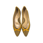 Elevate your ensemble with a radiant touch of Italian elegance, courtesy of Borbonese. These pointed-toe Ballet Flats are more than just a staple; they’re a statement. Adorned with a unique spotted print set against a bright yellow braided band that embodies the bold spirit of the trendsetter. The refined low heel and a hint of gold detailing infuse these flats with an air of luxurious sophistication. Indulge in the craftsmanship of 100% genuine leather that whispers quality with every step.