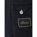 Brioni ‘Ravello’ Check Single-Breasted Jacket. Blue wool check fabric, front closure with two buttons, two front pockets with flaps and pocket on the side, classic peak collar, two vents on the back. Internal lining, classic line with regular fit. Internal SKU: 24JUN101. Composition: 100% Wool-Internal Sku:24GIU101