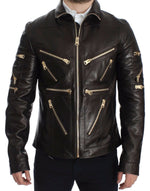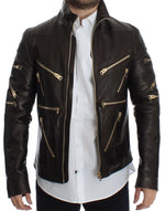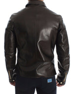 Dolce & Gabbana Brown Lambskin Leather Zipper Jacket