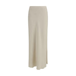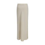 The Long Skirt by Brunello Cucinelli embodies refined, understated elegance. Designed with an elasticated waistband, it ensures comfort while maintaining a regular fit. The two side slits add fluid movement to the silhouette, while the monochrome design enhances its clean aesthetic. A versatile and sophisticated piece, perfect for contemporary feminine styling.