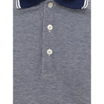 Polo Canali short sleeve blue 3 buttons contrasting collar navy blue cotton pique fabric