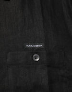 shirt is crafted from lightweight linen, offering a breathable and refined look perfect for warm-weather days. Designed in classic black, it features a sharp collared neckline and short sleeves for a polished yet relaxed silhouette. A versatile piece that seamlessly transitions from casual outings to smart summer ensembles.