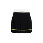 The striped pleated Skirt by Casablanca is a mini skirt with a structured silhouette that reflects the house’s refined, atelier-inspired approach to sportswear. Crafted from viscose fabric, it features an elasticated waistband with the Casablanca logo, a smooth yoke, and a pleated panel finished with a yellow stripe at the hem for a graphic, distinctive touch.