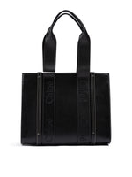 Chloé Black Woody Embroidered Logo Leather Medium Tote Bag