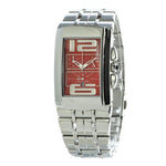 Type of mechanism: QUARTZ.Display: ANALOGICAL.Material Of Case: STEEL.Colour Of Case: SILVER.Material Of Bracelet: STEEL.Colour Of Bracelet: SILVER.Dial Colour:RED.Glass type: MINERAL.Clousure: PRESSURE.Water resistence: NO.Diameter dial: 28MM.Special Functions: