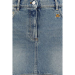 The denim circle Skirt by Courrèges combines contemporary style with unique character. Asymmetrical and embellished with two welt pockets on the front, it features the embroidered AC logo for a distinctive detail. Each piece is unique thanks to the manual bleaching process, which gives it unrepeatable shades and an authentic vintage effect.