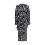 The Como Dress in Crêpe de chine by Crida Milano is a garment with sophisticated and feminine appeal. The wrap model, with its draping on the front, creates a fluid and enveloping effect that enhances the figure. The V-neckline adds a touch of sensuality, while the polka dot pattern gives a playful yet elegant character. The tie bow on the left hip introduces an element of originality, gently emphasizing the silhouette. An elegant drape created by a side stop at the waist gives the dress an unprecedented and refined note, making it perfect for special occasions or a sophisticated daytime look. The crepe de chine fabric adds a touch of luxury and comfort, making this dress a true classy wardrobe piece.