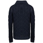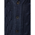 Trecce Cashmere Cardigan Cruciani. Blue color, knitted with cables, shawl collar, front fastening with buttons. Composition: 100% Cashmere