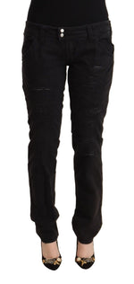 CYCLE Black Cotton Distressed Low Waist Slim Fit Denim Jeans