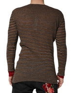 Daniele Alessandrini Brown Black Stripes Wool Crew Neck Pullover Sweater