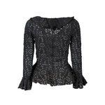 LONG SLEEVE BLOUSE, V-NECK, ELASTICATED CUFFS, CONTRASTING DETAILS, LOGO