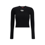 The ribbed viscose Top with Oval D by Diesel is crafted from a soft ribbed knit made of a mixed yarn that includes viscose from responsibly managed forests. The design features a slim fit that flatters the silhouette, with a round neckline and long sleeves. The metal Oval D plaque inlaid on the chest adds a distinctive and contemporary touch to the minimal design, making it perfect for a refined yet understated look.