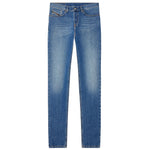 Diesel regular-fit jeans in faded blue cotton, slightly stretchy, five pockets, button fastening, embroidered logo on the back