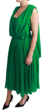 Dolce & Gabbana 100% Silk Green Sleeveless Pleated Maxi Dress