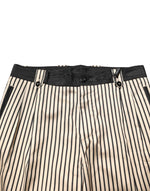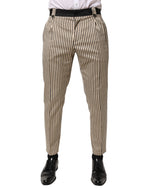 Dolce & Gabbana Beige Black Striped Cotton Slim Fit Trousers Pants