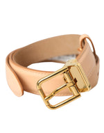 Dolce & Gabbana Beige Calfskin Leather Gold Metal Buckle Belt