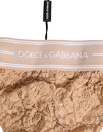 Dolce & Gabbana Beige Lace Logo Elastic Waist Thong Tanga Underwear