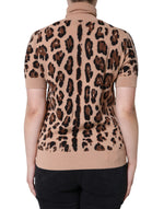 Dolce & Gabbana Beige Leopard Print Wool Turtleneck Top
