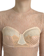 Dolce & Gabbana Beige Nylon Floral Lace Bustier Cropped Top