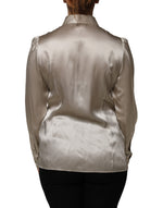 Dolce & Gabbana Beige Satin Silk Collared Long Sleeves Top