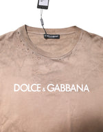 Dolce & Gabbana Beige Tie Dye Logo Print Cropped T-shirt