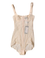 Dolce & Gabbana Beige Tulle Balconette Bra Bodysuit Underwear