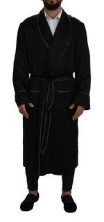 Dolce & Gabbana Black 100% Silk Robe Coat Wrap Jacket