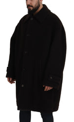 Dolce & Gabbana Black Alpaca Button Down Trench Coat Jacket