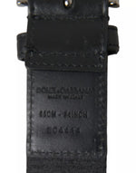 Dolce & Gabbana Black Blue Logo Silver Metal Buckle Belt