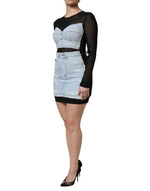 Dolce & Gabbana Black Blue Long Sleeves Denim Mini Dress