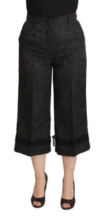 Dolce & Gabbana Black Brocade Cropped High Waist Pants