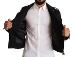 Dolce & Gabbana Black Brocade Full Zip Biker Coat Jacket