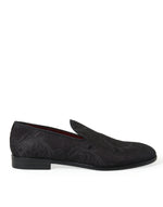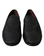 Dolce & Gabbana Black Brocade Men Slip On Loafer Dress Shoes