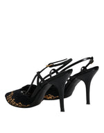 Dolce & Gabbana Black Brown Lace High Heels Slingback Shoes