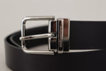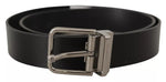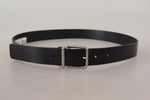 Dolce & Gabbana Black Calf Leather Logo Engraved Metal Buckle Belt