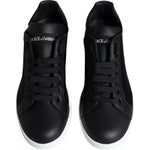 Dolce & Gabbana Black Calf Leather Portofino Sneakers Shoes